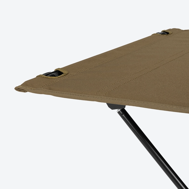 Cấu trúc Hard Top vẫn giữ nguyên: lõi cứng bên trong kết hợp lớp vải bên ngoài, tạo bề mặt phẳng và ổn định khi sử dụng. Khi đặt các vật dụng như ly, bình nước hay dụng cụ pha cà phê, mặt bàn không bị võng như bàn vải thông thường.
