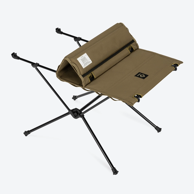 Hai cạnh dài của bàn được tích hợp webbing, cho phép gắn thêm phụ kiện hoặc cố định đồ dùng khi cần. Đây là chi tiết nhỏ nhưng đúng với cách Helinox làm dòng Tactical – mọi thứ đều phục vụ cho việc sử dụng, không mang tính trang trí.